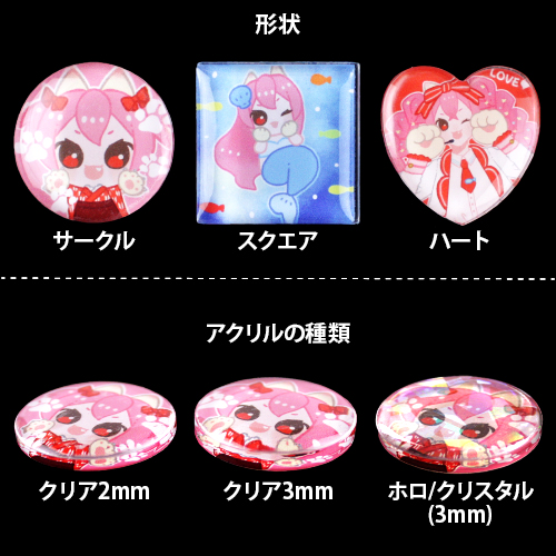 サークル、スクエア、ハートの3パターンをご用意しております。