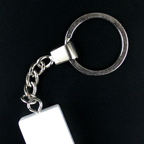 キーホルダーのオモテから「白印刷→カラー印刷」の順に2層印刷を行います。